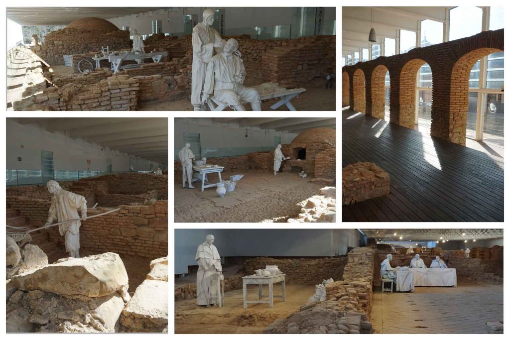 We gaan op het fietsje de stad in, hele mooie brede wegen met aparte fietspaden en fietsverkeerslichten het is prima fietsen, al rijden er niet zoveel fietsen en is men er nog niet zo heel erg aan gewend dat een fiets je stilletjes van achteren benadert. Als eerste fietsen we naar het oude Moorse kasteel waarin nu het provinciehuis is gevestigd. Dan naar het oude centrum met de imposante Kathedraal “Basilica de Nuestra Señora del Pilar”, een immens grote kathedraal, binnen was een kleine dienst gaande, wat een enorme akoestiek heeft zo’n gebouw. Nog een stukje Romeinse muur en de overdekte Mercado die na 5 uur (siësta) weer open ging, hier hebben we natuurlijk wat Spaanse ham en Manchego kaas gescoord. Tevreden teruggefietst, het is een schone, ruime, leuke stad maar nu een wijntje met ham en kaas.