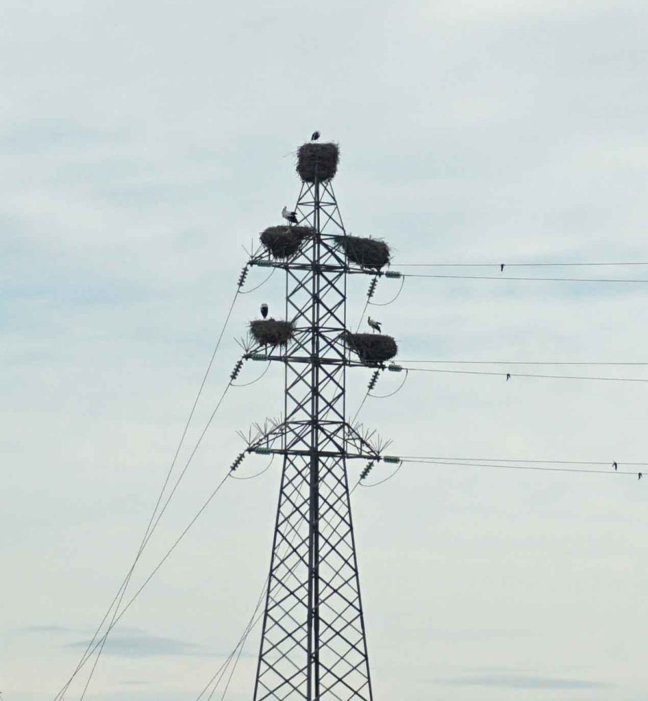 De volgende morgen weer op pad eerst de stad maar uit en dan weer een geel weggetje opzoeken. De stad uit is rijden langs industrie, oude spoorlijnen en heel veel elektriciteitspalen. Dit gebied is gevonden door een kolonie ooievaars op elke paal of mast zit wel een nest en soms wel meerdere ook, kilometers lang zien wij ooievaarsnesten.