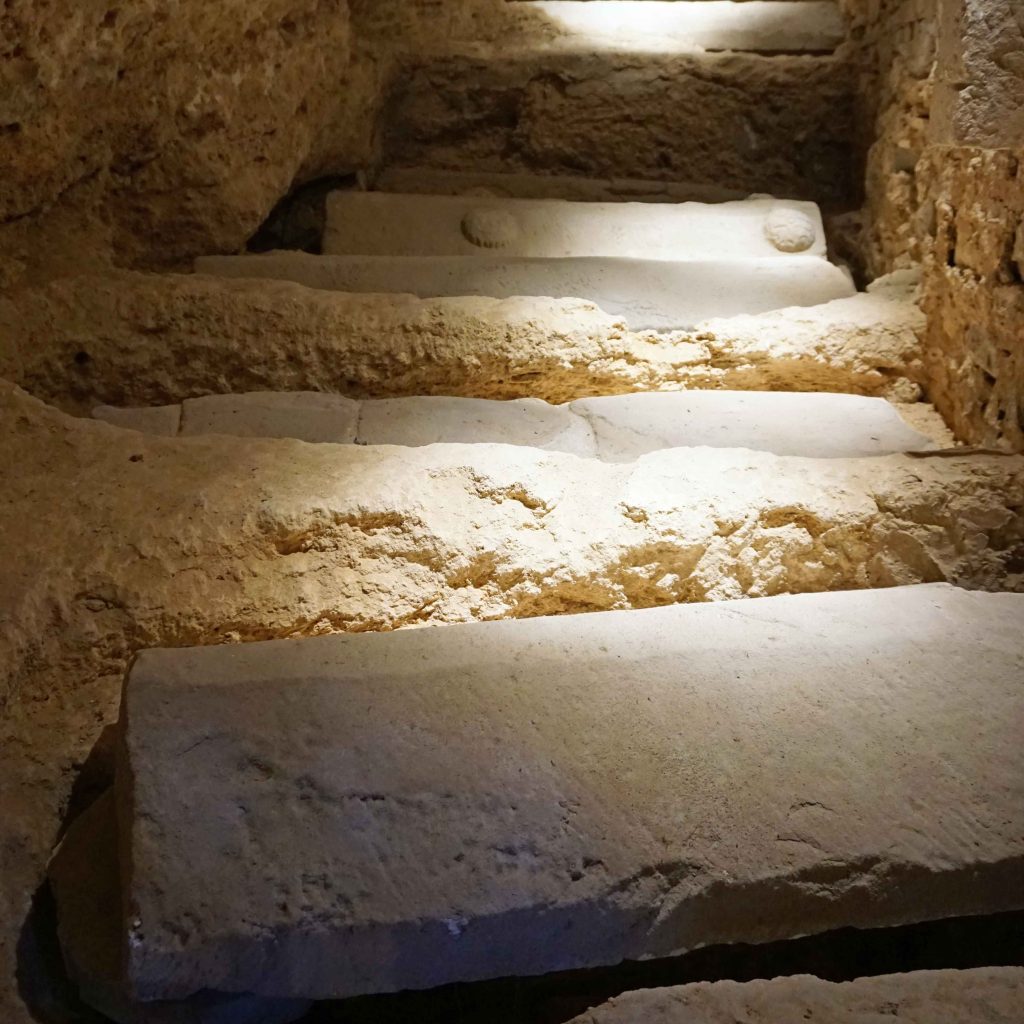 Na dit bezoek dalen we via de nodige haarspeldbochten al dan niet voorzien van randen vol sneeuw nog verder de berg af naar het dorpje aan de voet van de berg, Santa Cruz de la Serós. Dit dorp behoort ook tot de Abdij van La Peña. Hier was het nonnenklooster gevestigd waarin de adellijke vrouwen en dochters leefden en tenslotte begraven werden zodat zij dicht bij hun overleden mannen konden zijn die zelf op de berg begraven lagen.
