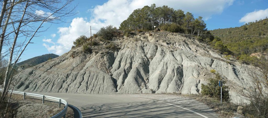 Het landschap is droog en nog in winterslaap we zien nog niet veel groen verschijnen. Wel krijgen we zin om muziek van Ennio Morricone op te zetten want we lijken wel door een western landschap te rijden, nu zijn er veel films in Spanje opgenomen maar dat gebied ligt zuidelijker, daar komen we later deze maand nog wel.