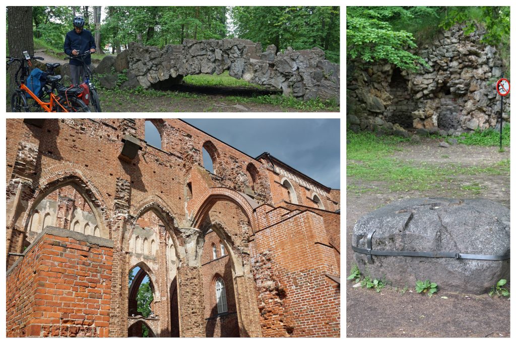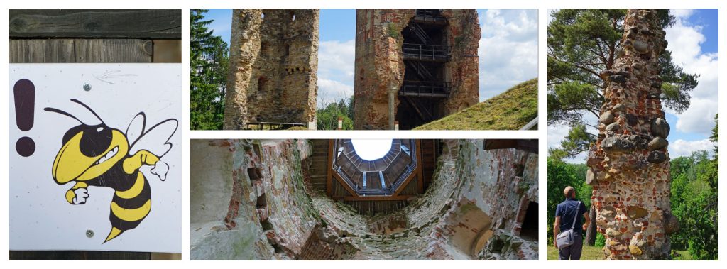 Marcel beklimt nog even met gevaar voor eigen leven, want zijn vriendjes de wespen hebben er een nest, de restanten van de oude hoofdtoren. Wij eindigen onze rit vandaag op een parkeerplaats naast een grote buitensport accommodatie in Tartu. Rondom zien we kinderen en volwassenen bezig met skaten, langlaufen op wieltjes, Nordic walking, balsporten en nog meer. Wij pakken de fietsjes en gaan naar het oude centrum van Tartu, de intellectuele “hoofdstad” van Estland. De periodes dat de Duitsers en de Russen hier de baas waren bleven de Esten gewoon lijfeigenen en hadden geen enkele zeggenschap maar in de 16e eeuw tijdens de Lijflandse oorlog wonnen de Zweden van de Russen en hebben de Zweden de Esten hun eigen identiteit gegeven met boeken in het Ests en een universiteit in Tartu. Die gaan wij nu bekijken, mooi gelegen op een heuveltop (de kathedraalheuvel) stonden hier vroeger een burcht en een kathedraal, waarvan nog een mooi skelet staat. Veel openbare gebouwen die behoren tot de universiteit waaronder een anatomietheater, het observatorium dat in 1820 de krachtigste achromatische telescoop van de wereld had. Dan op zo’n plek vol kennis en geleerdheid is er ook een heuse heidense offersteen, wat weer aangeeft dat het heidense geloof hier lang in het dagelijkse leven is blijven bestaan.